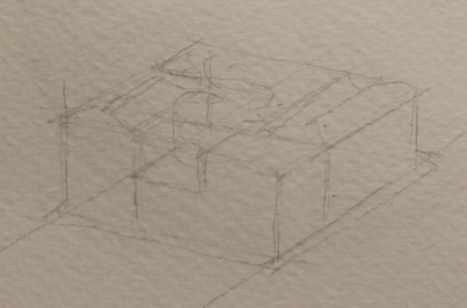 - d'abord, sur un papier aquarelle, un brouillon au crayon