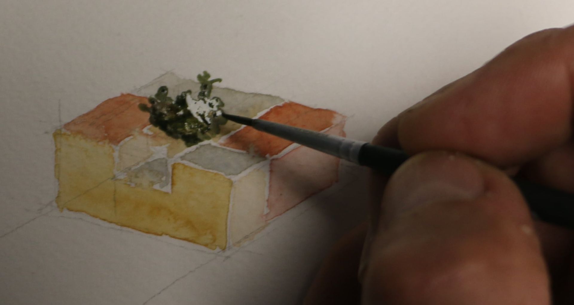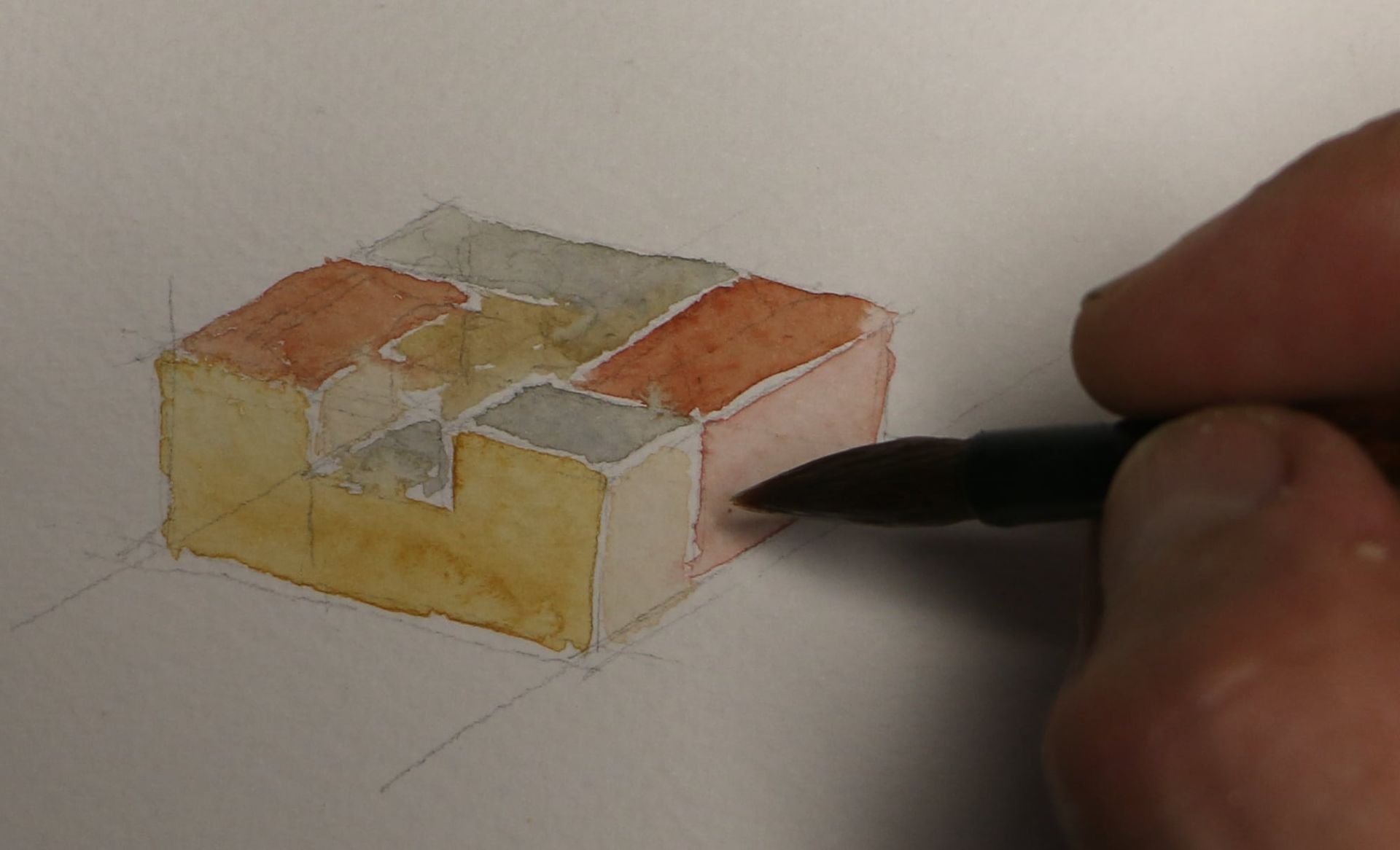 - Ensuite, une mise en couleur initiale à l'aquarelle
