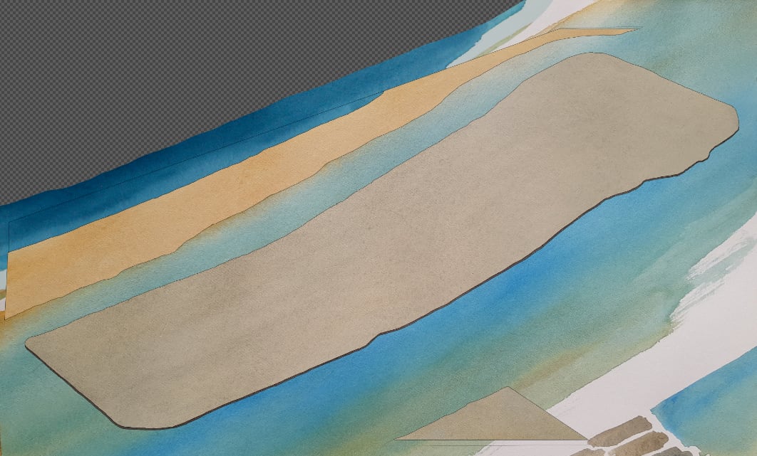 Ensuite les éléments ont été placés sur les planches de fond, comme celle de l'ile par exemple