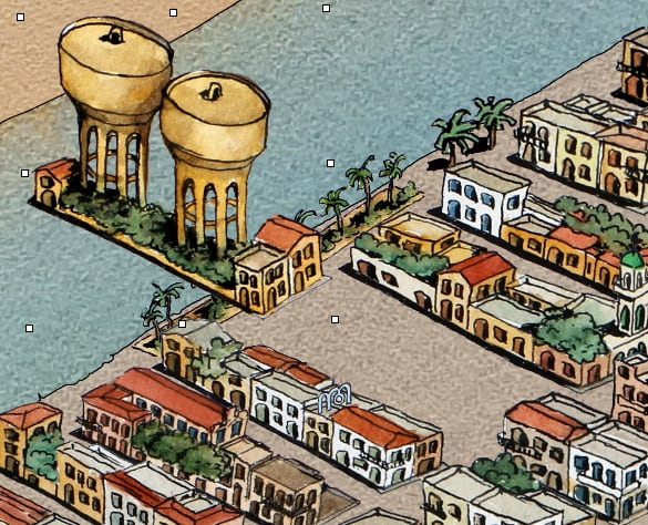 L'avantage de cette méthode est que l'on peut bouger, redimensionner et placer précisément tous les éléments comme par exemple les châteaux d'eau